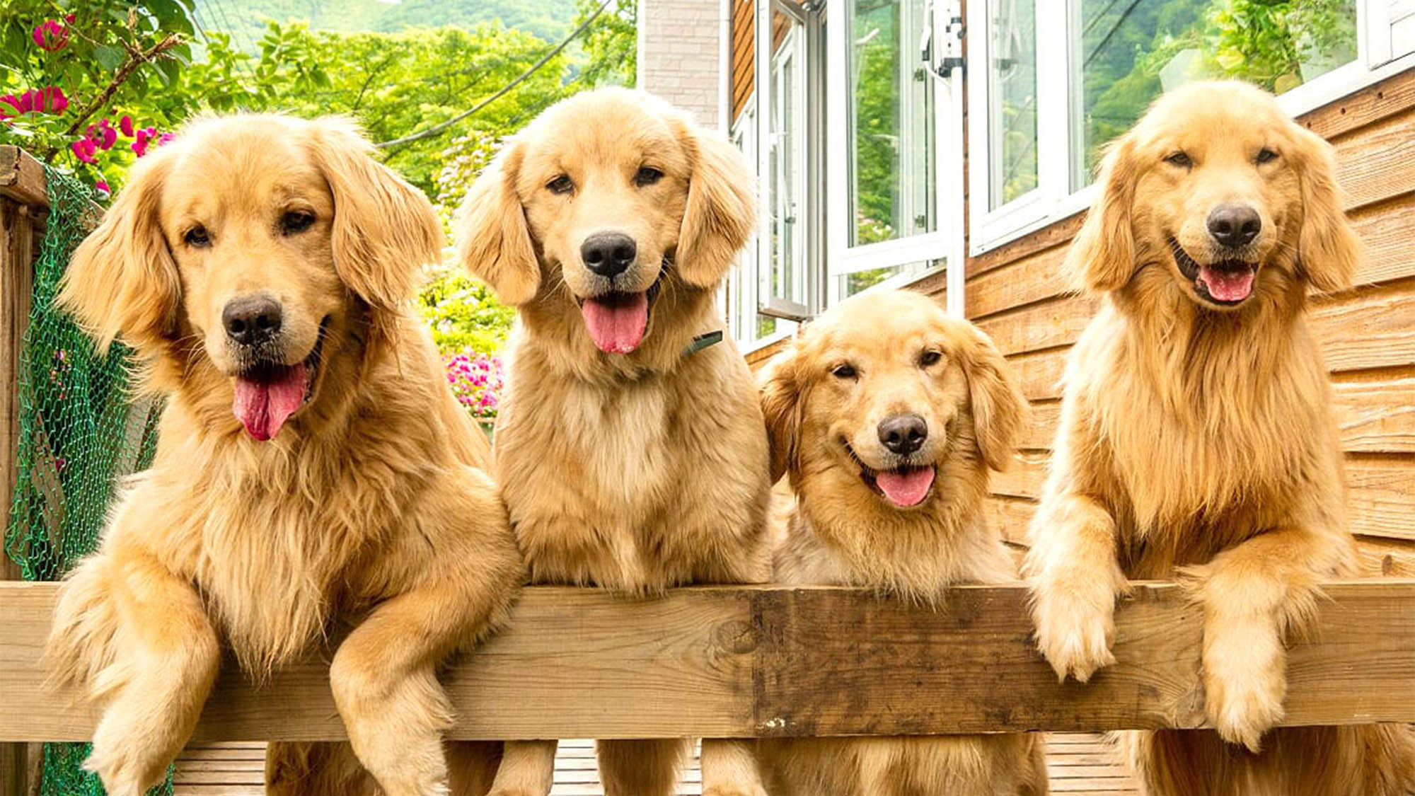 ゴールデンレトリバーのステラちゃん、コスモちゃん、トキトくん、クイーンちゃんの4頭が看板犬としてお出迎えしてくれます♪