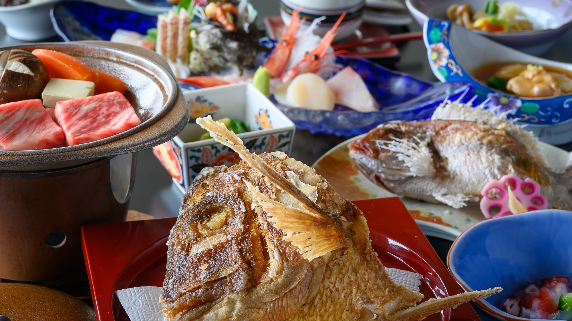 日本海に面した温泉宿で、旬の海鮮料理が味わえます。